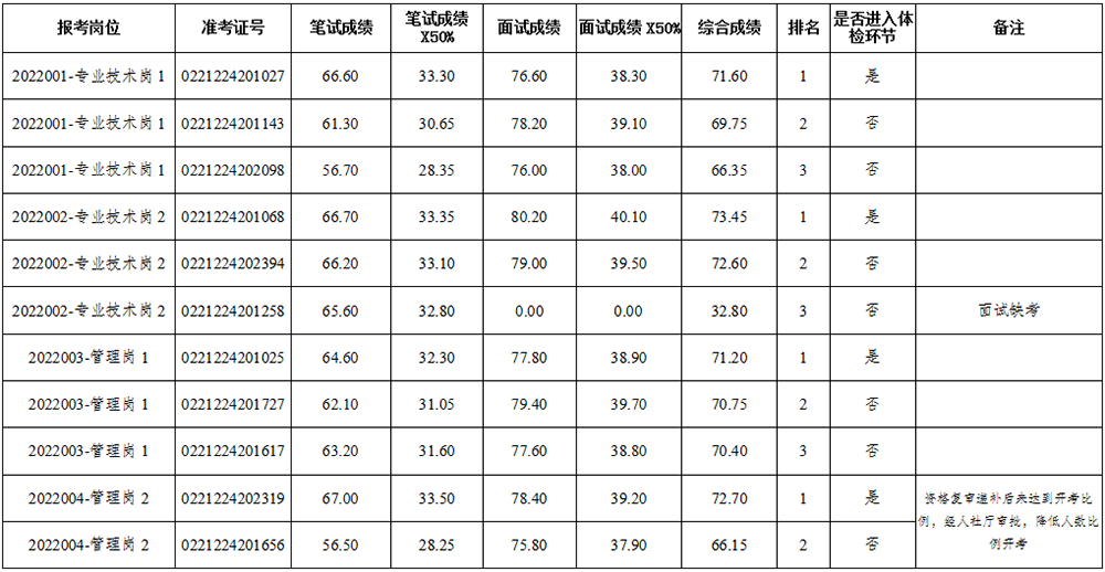 请进入体检环节人员保持通讯畅通,体检、考察具体事宜另行通知。